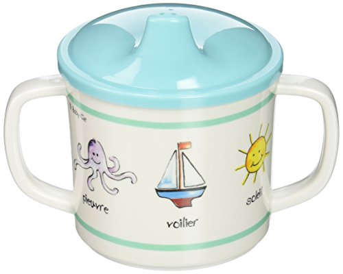 Drop and dishwasher safe, NOT Microwave safe;The Sippy cup has a removable inside stopper;European designs;Words and drawings make meals interesting;Wording and French Theme