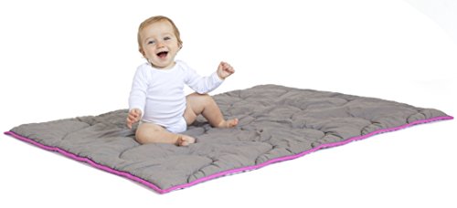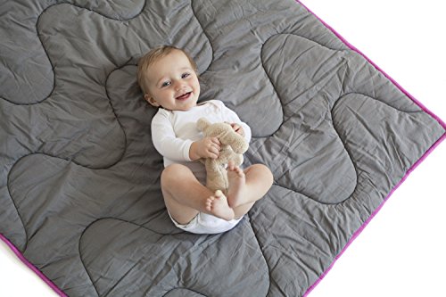 All in One Play Blanket and Toddler Quilt,Slate/Hot Pink