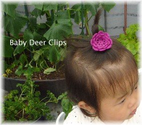Baby Deer Clips ヘアクリップ for ベビー ニットフラワー (パープル)