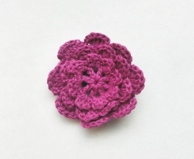 三段重ねの花びらがかわいらしいニットフラワー。コットン100%の素材で季節を問わずお使いいただけます。