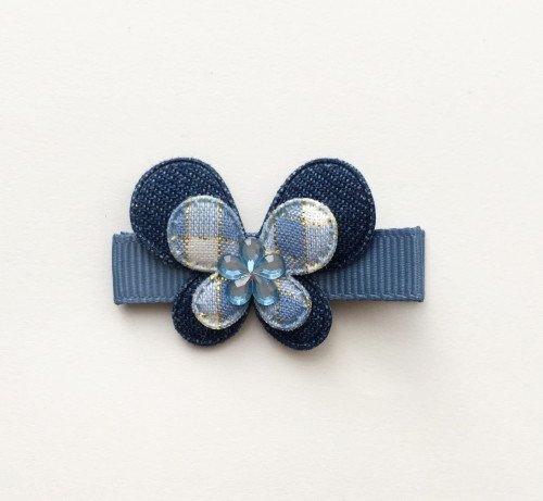デニム&チェック、フラワーラインストーン。ちょっぴりレトロでポップなちょうちょです。