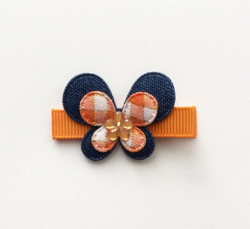 デニム&チェック、フラワーラインストーン。ちょっぴりレトロでポップなちょうちょです。