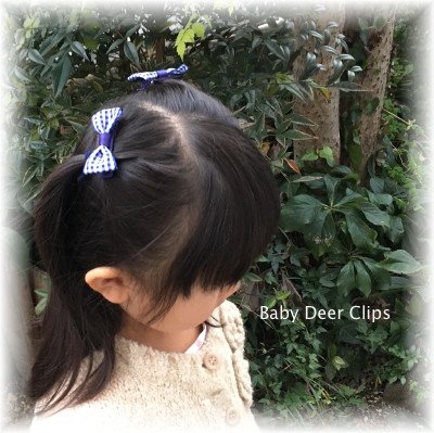 Baby Deer Clips ヘアクリップ for ベビー チェックリボン (チョコ)