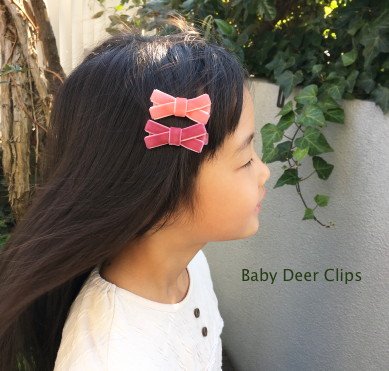 Baby Deer Clips ヘアクリップ for ベビー キッズ New ベルベットリボン (アプリコット)