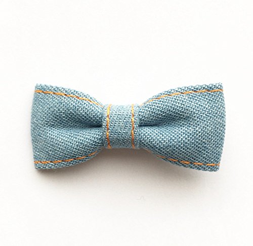 Baby Deer Clips ヘアクリップ for ベビー キッズ ステッチデニムリボン (ライトブルー)