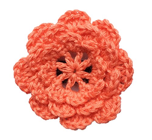 三段重ねの花びらがかわいらしいニットフラワー。コットン100%の素材で季節を問わずお使いいただけます。