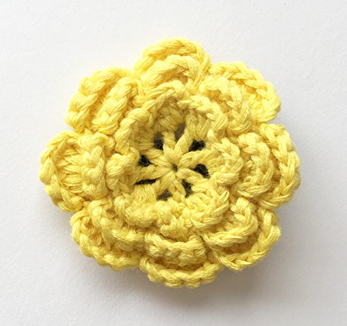 三段重ねの花びらがかわいらしい大きめニットフラワー。