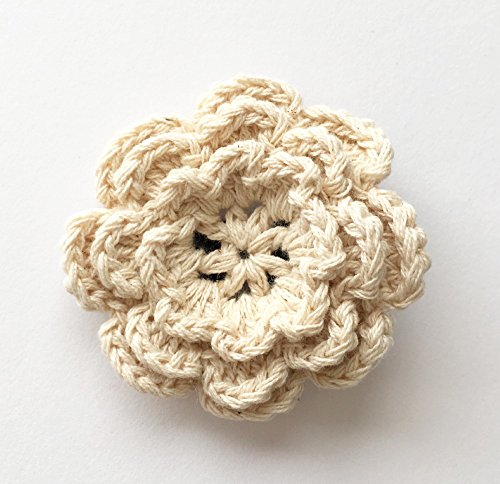 三段重ねの花びらがかわいらしい大きめニットフラワー。