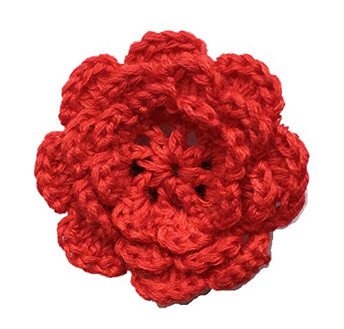 三段重ねの花びらがかわいらしいニットフラワー。コットン100%の素材で季節を問わずお使いいただけます。
