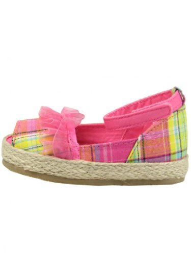 ピンク格子柄and Ruffle Peep Toe Espadrille幼児ガールズベビー靴by Baby Deer カラー: ピンク