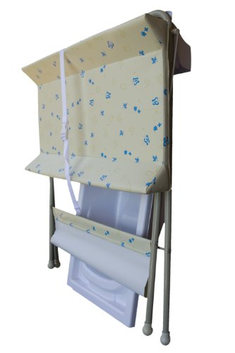 Bathtub and changer combo;Elevated design for parents comfort and baby safety;Easily folds for storage;Keeps baby essentials organized;Flexible drain tube