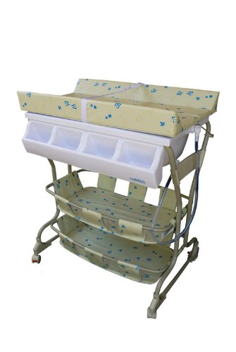 Bathtub and changer combo;Easily rolls into any room of the house;Elevated design for parents comfort and baby safety;Keeps baby essentials organized;Flexible drain tube