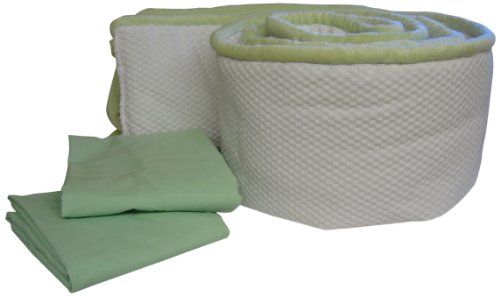 Set includes bumper and two fitted sheets;Bumper keeps child's head from banging against the furniture;Polyester chenille