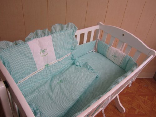 Baby Doll Bedding Gingham with Rocking Horse Applique Cradle Bedding Set, Mint by BabyDoll Bedding