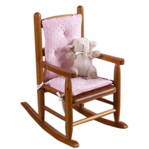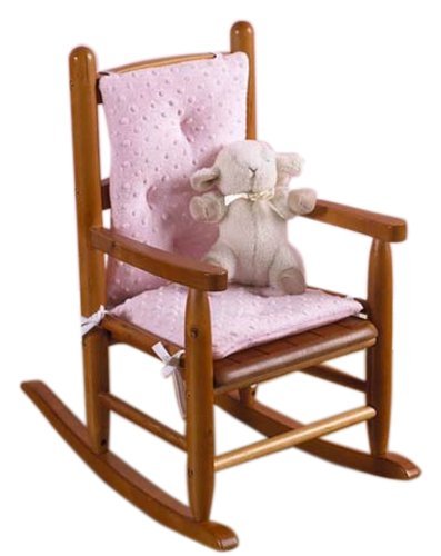 Easily referbish that old wood junior rocker with the Baby Doll Heavenly Soft rocking chair pad. The soft touch dotted minky chennile poly matirial is filled with polyfill and specially designed for style and comfort. Ties on each corner keep the pad in place. Fully manufactured in the USA.