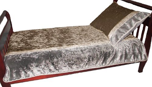 Dress your toddler's bed with babydoll bedding's exquisite four peice crocodile toddler bedding set. Made from tri-colored velvet, crocodile designed fabric, it's comforter and pillow sham are backed with heavenly soft poly cotton which coordinates with the set's fitted and flat sheets. Comforter and pillow sham are hand wash only. Fully manufactured in the USA.