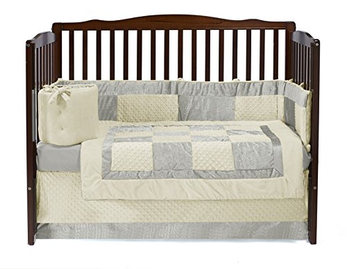 Fabric content: velvet crocodile, minky chenille;Includes: comforter, bumper, dust ruffle, fitted sheet;Fits most standard sized cribs;Machine washable;Fully manufactured in the USA