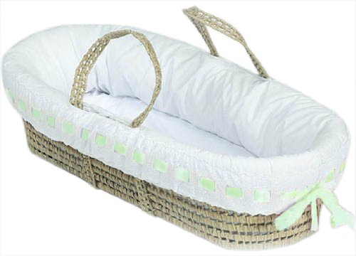 - Baby Doll Bedding Pretty Ribbon Moses Basket, Green