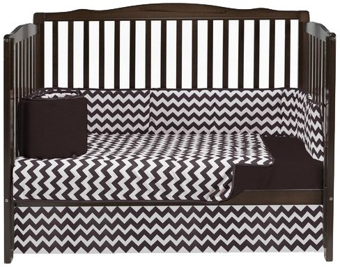 Baby Doll Bedding Chevron 4 Piece Crib Bedding Set, Brown