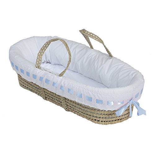 BabyDoll Bedding Eyelet Ribbon Moses Basket, Blue Ribbon