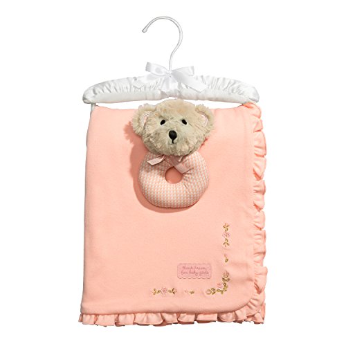 2-piece set includes pink double-ply blanket and coordinating plush bear ring rattle;Blanket measures 40 x 30-inches;Made of 100% combed cotton interlock; machine wash;Includes padded satin hanger;Look to Baby Dumpling by CR Gibson for the sweetest gifts to thrill every new mom