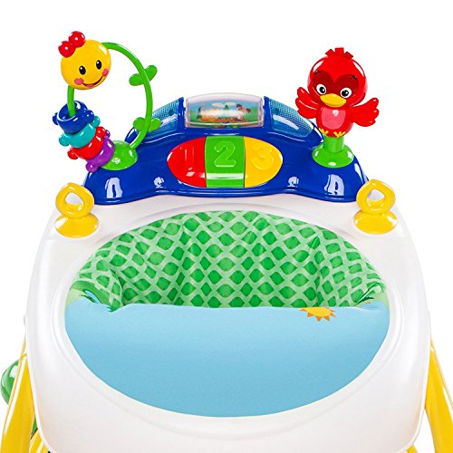 Baby Einstein Caterpillar and Friends Discovery Walker offers classical melodies, 3 languages, a bead chaser and squeaker toy. The unique elliptical frame provides a sturdy platform for little ones to enjoy. Lights and sounds are activated by numbered piano keys. Link loops allow you to add baby's favorite toys. The high seat back provides additional comfort and support for baby. Remove the toy station from the walker for the added benefit of fun floor play. Great minds start little.