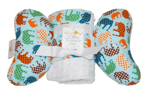 Baby Elephant Ears Head Support Pillow & Matching Blanket Gift Set (Blue Elephant) by Baby Elephant Ears
