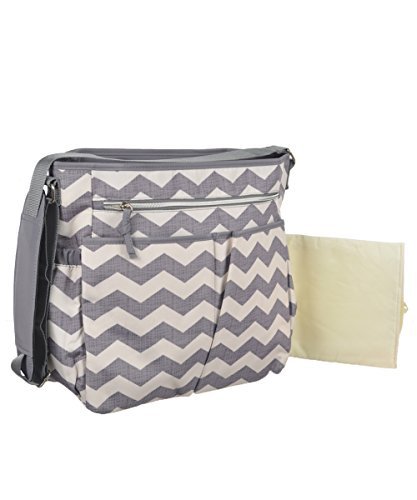 Baby Essentials "Zigzag Vibrations" Diaper Tote Bag with Changing Pad - gray/white, one size by Baby Essentials [並行輸入品]