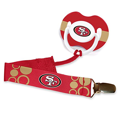 NFLフットボールチームロゴベビー乳児おしゃぶりクリップセット – with pickチーム!( San Francisco 49ers )