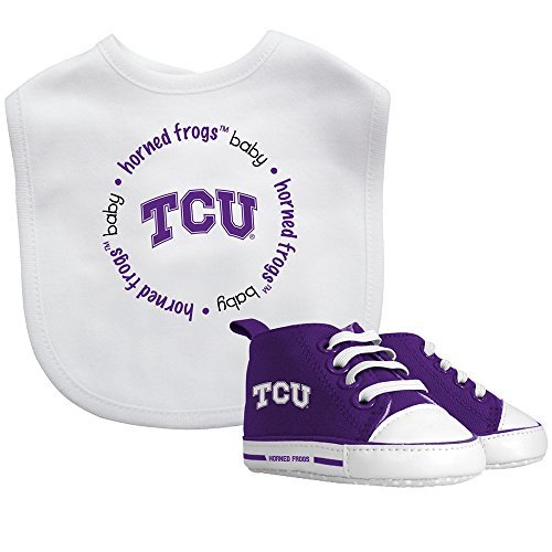 TCU Baby Fanatic Bib with Pre-Walkers, NCAA Texas Christian Horned Frogs Infant Shoe Gift Set by Baby Fanatic