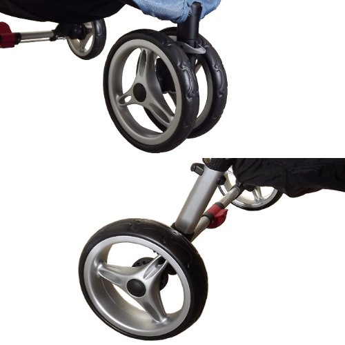 直径20cmのタイヤで道路の段差は楽々、ワンステップ折りたたみや、2トーンの大きくてかわいい幌とカラーは注目の的。