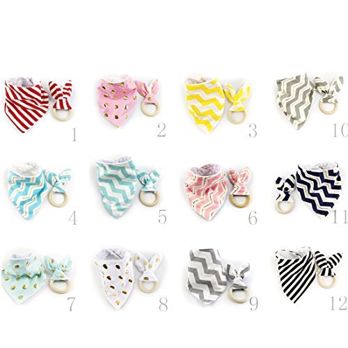 Toddler Scarf Bib (24pc 12set) Bunny Ears Teether Toys Montessori Infant Teething Gift Organic Natural Wooden Ring Bandana by LOVEBABY