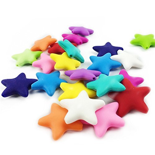 10pc Large Silicone Five-pointed Star Beads Teether More Than 5 Colors Mixed Colors Diy Necklace Bracelet by LOVEBABY
