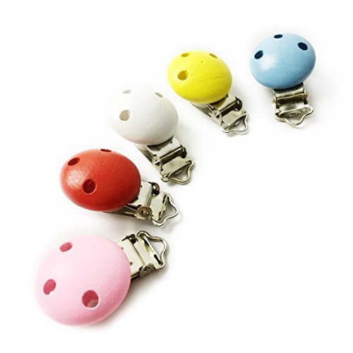 10pc Pacifier Clip Wooden Clip Selectable Silicone Teething Beads Suspender Clip Round and Flat by LOVEBABY