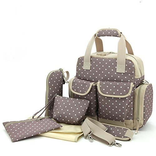 Baby Lovess 5 In 1 Diaper Tote Bags Baby Nappy Bag Mummy Handbag Backpack, Khaki Dot by Baby Lovess