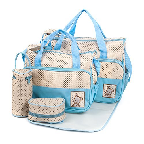 Baby Diaper Bag Tote Bags 5pc Set, Light Blue by Baby Lovess