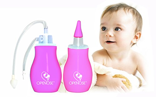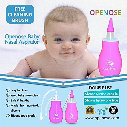 Openose Baby Nasal Aspirator and Booger Remover with Silicone Suction Capsule Include Cleaning Brush. Nose Suction Sucker for New Borns, Cleanable and Reusable BPA Free (Pink) by OpenoseTM