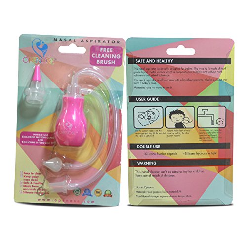 Easy to Use - The Openose nasal aspirator is specifically designed for babies, and comprises a suction capsule and hydrocone that can be quickly assembled. The hydrocone is placed inside the capsule, after which the nozzle is placed into the nose with the valve upturned, and you have to suck the other end of it to take out the snot. There is a precautionary feature that prevents backflow.;Top Quality - Both the hydrocone and suction capsule are made of food grade liquid crystal silicone, which is non-toxic, BPA free, tasteless, and odorless. You can rest assured it is of the best quality, so the health and safety of your baby is never compromised.;Compact and Portable - It is lightweight, so you can conveniently take it along in your purse or handbag and put it to use anytime, anywhere. You can now clean your baby's nose while traveling as well!;Simple Maintenance - Not only is it easy to put the parts together, but it is equally simple to disassemble and clean it. It should be washed after every operation with luke warm water, and kept in a box after the components are thoroughly dried.;Great Gift - This snot sucker makes a useful and practical gift during baby showers. Expecting mothers always value practical and handy gifts before their bundle of joy enters this world, so your gesture will definitely be appreciated.