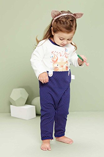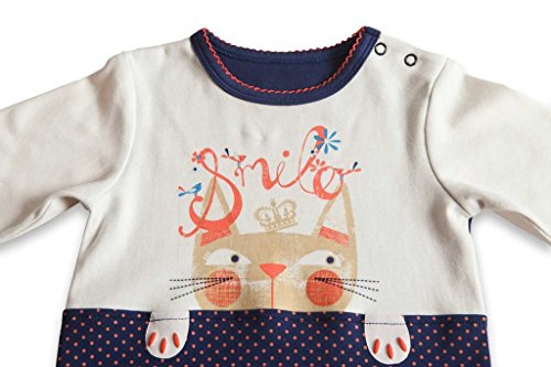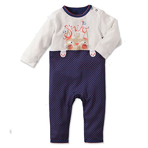 Baby Nest ロンパース カバーオール 女の子 長袖 ネコ柄 コットン100% ネイビー 12-18M