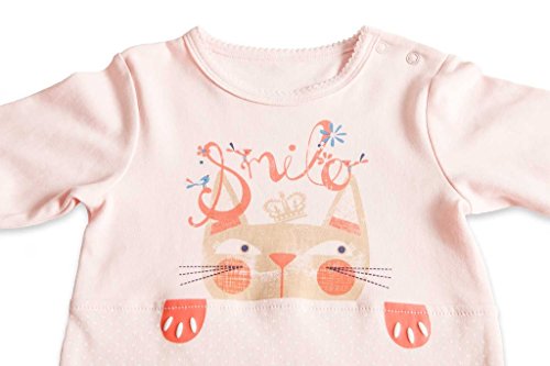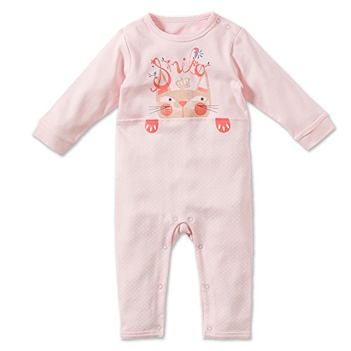 Baby Nest ロンパース カバーオール 女の子 長袖 ネコ柄 コットン100% ピンク 3-6M