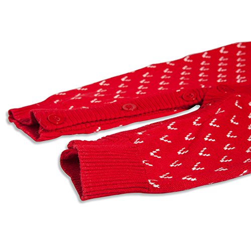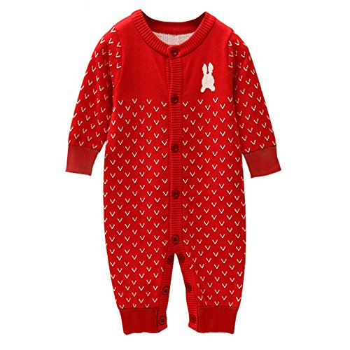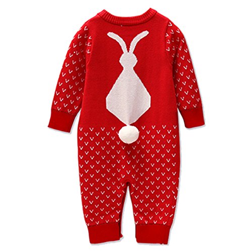 Baby Nest ロンパース カバーオール ウサギさん シッポ付き 前開き 男の子 女の子 ニット 長袖 コットン100% レッド 18-24M