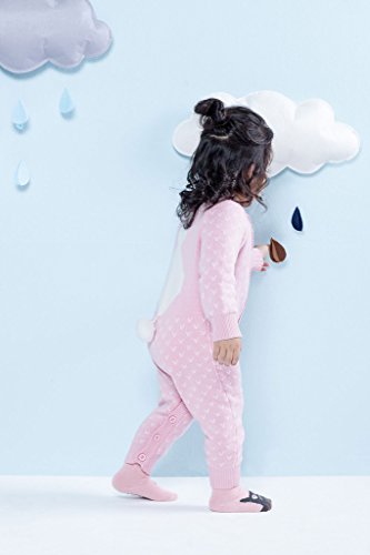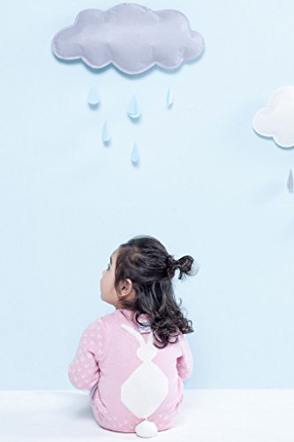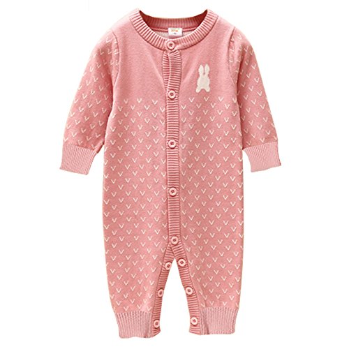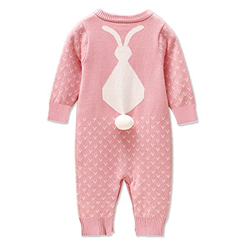 Baby Nest ロンパース カバーオール ウサギさん シッポ付き 前開き 男の子 女の子 ニット 長袖 コットン100% ピンク 3-6M