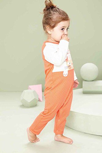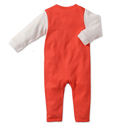 Baby Nest ロンパース カバーオール 前開き 女の子 長袖 ネコ柄 コットン100% オレンジ 6-9M