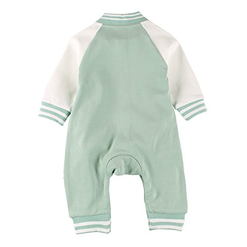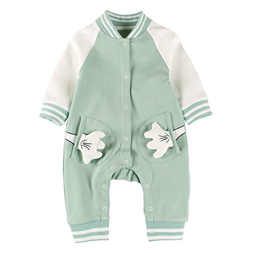 Baby Nest ベビー服 前開き 長袖 カバーオール 野球 ロンパース 男の子 コットン グリーン 6-9M