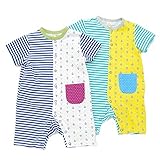 Baby Nest 夏 ベビー服 半袖ロンパース 2枚セット 女の子 男の子 肩ボタン フルプリント コットン セット4 9-12M