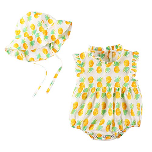 Baby Nest 夏 ボディースーツ ベビー ロンパース おそろい帽子付き パイナップル 女の子 男の子 綿100% 6-9M