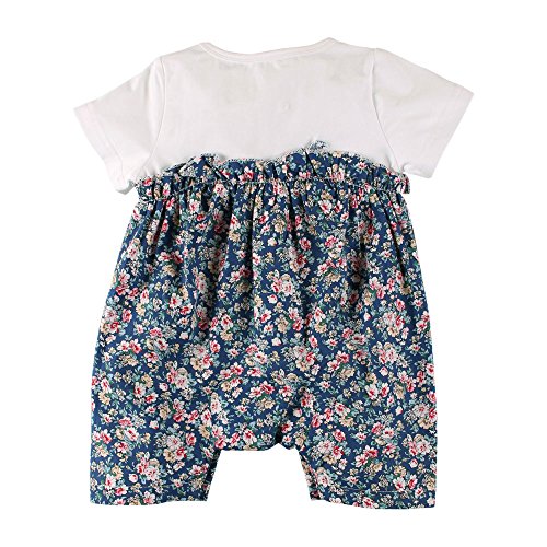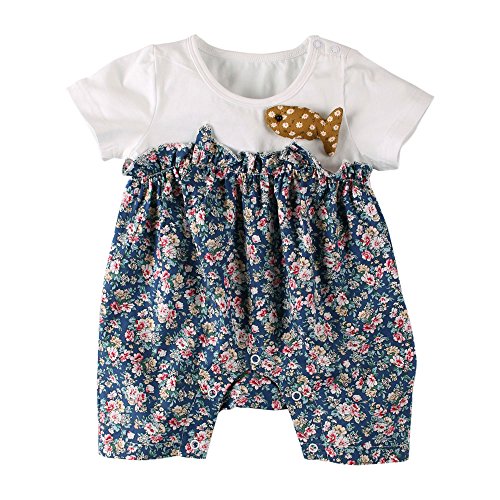 Baby Nest 夏 ベビー服 半袖ロンパース お花柄 女の子 コットン100% ネイビー 18-24M