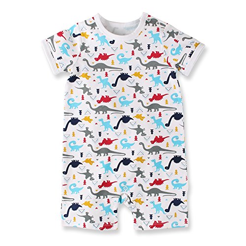 Baby Nest 夏 ベビー服 半袖ロンパース 女の子 男の子 肩ボタン フルプリント コットン ドラゴン-1 3-6M