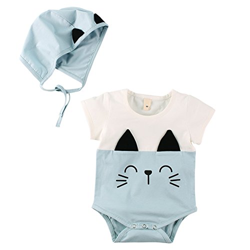 Baby Nest 夏 ベビー服 半袖ボディースーツ ロンパース 女の子 男の子 肩ボタン アニマル コットン100% ブルー 6-9M