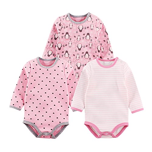 Baby Nest 長袖ボディースーツ 柄違い 3枚セット 女の子 ベビー服 新生児 ロンパース コットン 6-9M
